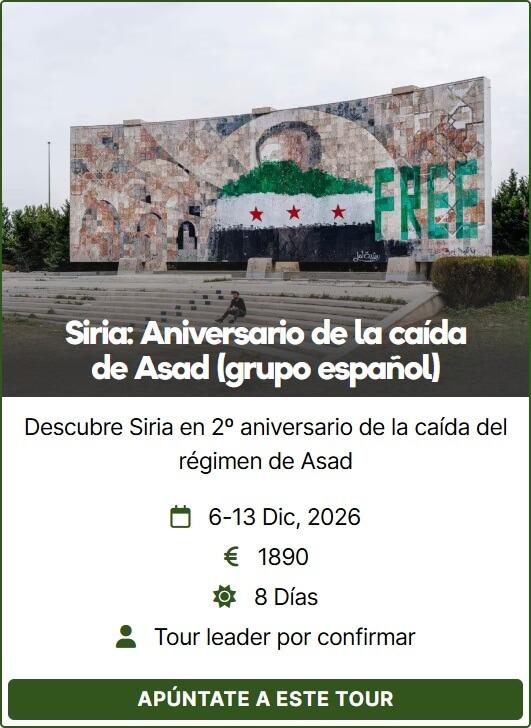 El gobierno de al-Ásad finalmente ha caído después de más de 50 años de brutal represión, y esta expedición coincide precisamente con el 2º aniversario de la caída del régimen (8 de diciembre), un día de celebración multitudinaria para los sirios, que sin duda llenarán las calles de Damasco ondeando banderas y entonando cánticos de libertad; un acontecimiento que sin duda merecerá la pena presenciar.
